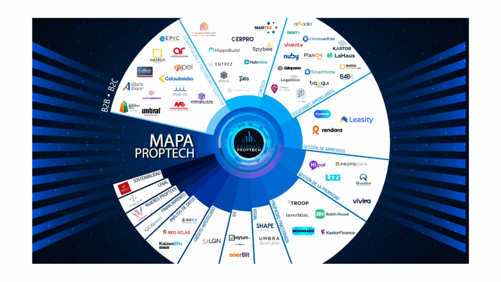 El Mapa Proptech de Colombia es una herramienta interactiva creada por los asociados pertenecientes a la Asociacion Colombia Proptech que visibiliza a las empresas, startups y actores clave que están transformando el sector inmobiliario y contructor a través de la tecnología.